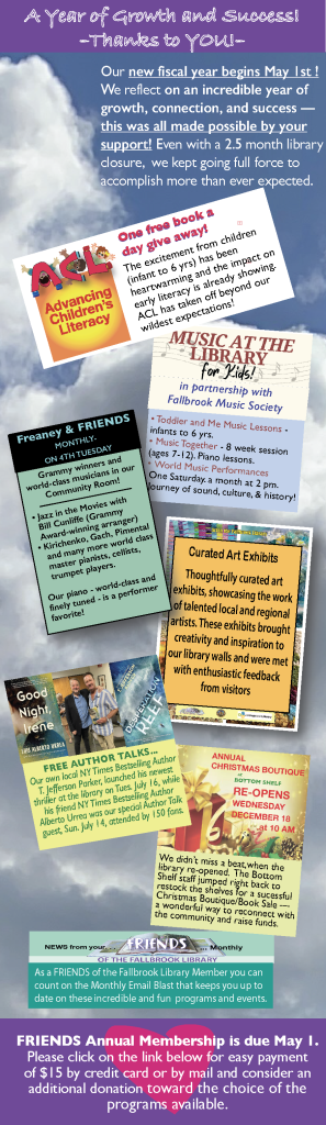 Client: Friends of the Fallbrook Branch of the San Diego County Library (a CA non-profit organization).